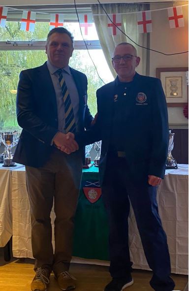 2022 Club Captain Des Gardiner giving 2023 Mark Lambert his 2023 Club Captains Jacket